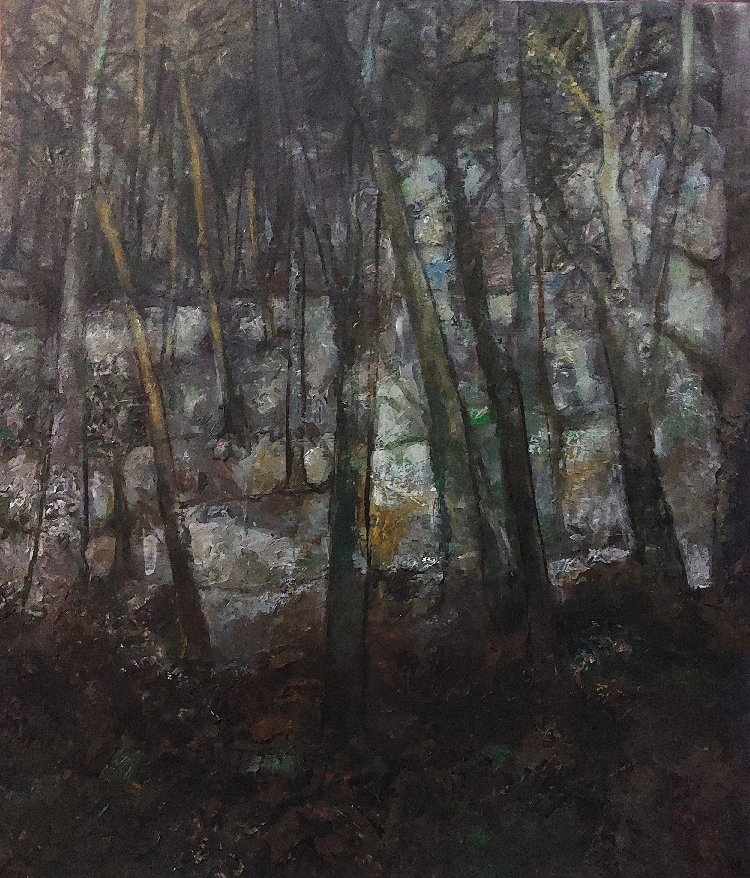 Een reeks van 12 schilderijen 2018- cyclus -HET BOS (de seizoenen) - acryl op paneel - lengte 5m 12x 37x 41,5cm